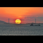 | 説明 | 大阪・関西万博の大屋根リングからは、 この日明石海峡大橋に沈む夕陽が見られました。 大橋の手前にある神戸空港に駐機している飛行機が、 夕陽の中でシルエットとなっていました。 |