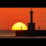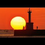 | 説明 | 防波堤灯台で釣りをする人が夕陽と重なるように撮りました。 |
