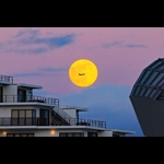 | 説明 | 神戸港に停泊中の日本丸と海王丸の間から、 今年初めての満月が昇ってきました。 |