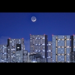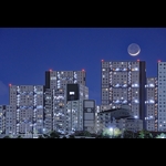 モダンなデザインの高層住宅と三日月のコラボです。