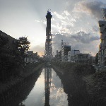 | 説明 | 建設途中のスカイツリーの夕日を十間橋より撮影。 川面に映ったスカイツリー。 |
