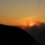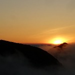 | 説明 | シルエットの山は中岳(左)と大船山(右)です。 天気が良すぎて朝焼け雲が見えなかったのが少し残念です。 |