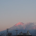 > 夕陽を浴びてピンクに染まる富士山