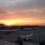 中部国際空港 アクセスプラザをでたところから日の出が見えます。