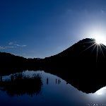 鹿児島県の藺牟田池からの日の出(朝5時30分)で、撮影は6時15分に飯盛山から昇るダイヤモンド
