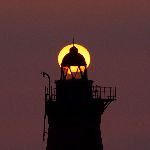 灯台に昇る朝日