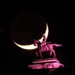 説明 伊達政宗騎馬像と四日月が重なるとき