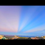 > 美しい反薄明光線の朝空