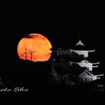 伊賀忍者が現れそーな満月に映し出された青山高原の風車。