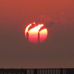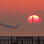 | 説明 | 第一ターミナルからだと朝日は無理だと思ってたら、展望台の端っこに東方向を望める場所があった。 飛行機もいい感じに離陸して行くのが見えたんだけど、朝日と対岸の工場の煙突が重なってしまい、ちょっと残念。でも、これはこれでなかなか面白いような気もする。 |