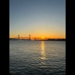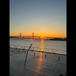 | 説明 | ベイブリッジから昇る日の出 ここは横浜大桟橋埠頭、360°見渡せる。 夏になると日の出はつばさ橋まで傾く |
