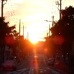 > 並木道の夕日