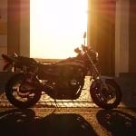 何気なくたたずむ建物の間口から見える夕陽 冬場がいいですよ!